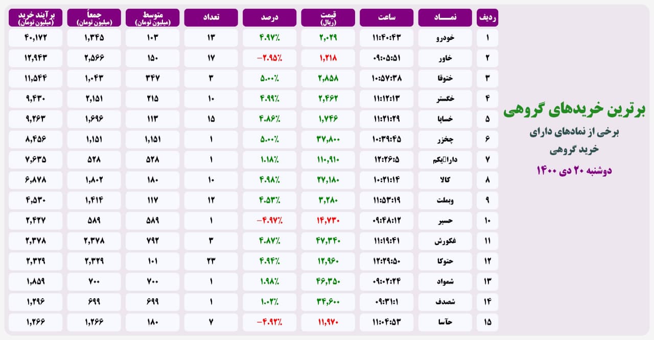 برخی از نمادهای دارای خرید گروهی: خودرو خاور ختوقا خگستر خساپا چخزر کالا وبملت حسیر غکورش حتوکا شمواد شصدف حآسا