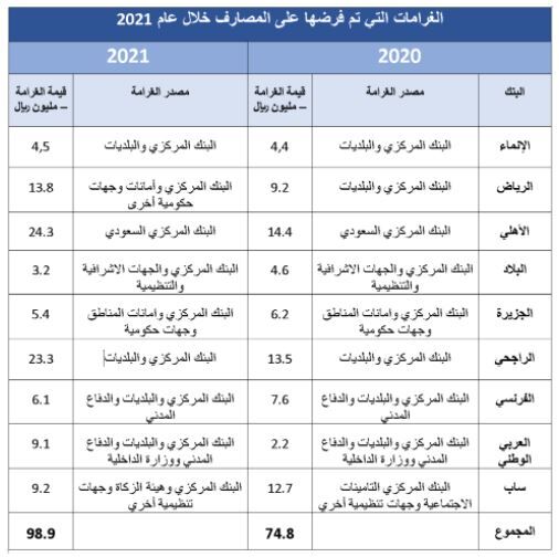 بازار؛ گروه بانک و بیمه: ارزش جریمه های اعمال شده بر بانک های سعودی طی سال گذشته ۲۰۲۱ به ۹۸.۹ میلیون ریال افزایش یافت که با احتساب نرخ هر ریال عربستان حدود ۷۹۲۷ تومان حدود ۷۸۴ میلیارد تومان جریمه پرداخت کرده اند.