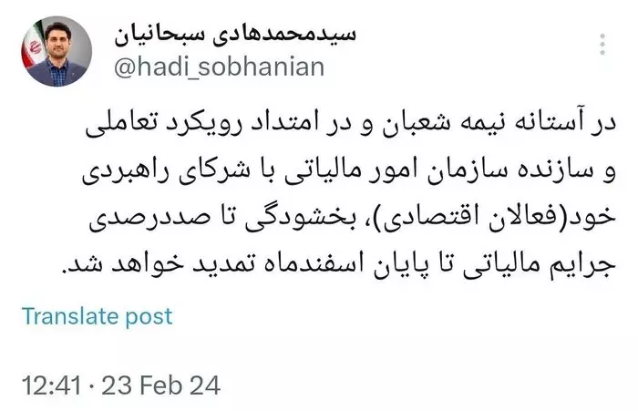 به گزارش بازار، سید محمد هادی سبحانیان در بخشنامه ای از بخشودگی کامل جرائم مالیاتی تا پایان اسفند ماه ۱۴۰۲ خبر داده است.