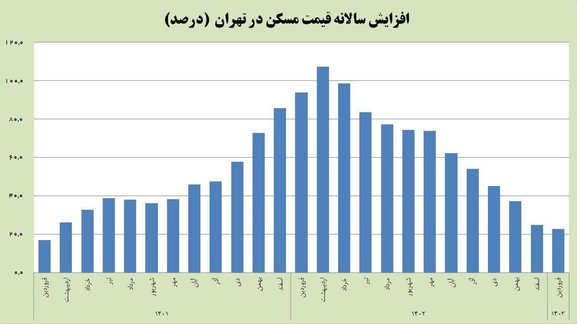 گزارش «تحولات معاملات بازار مسکن شهر تهران در فروردینماه سال ۱۴۰۳» که برگرفته از آمارهای خام سامانه ثبت معاملات املاک و مستغلات کشور است، توسط اداره بررسیها و سیاستهای اقتصادی بانک مرکزی تهیه و منتشر شده است. بر اساس این گزارش: در فروردینماه سال ۱۴۰۳، تعداد آپارتمانهای مسکونی معامله شده در شهر تهران به ۱.۵ هزار واحد مسکونی رسید که نسبت به ماه قبل و ماه مشابه سال قبل به ترتیب ۷۵.۶ و ۱۴.۲ درصد کاهش نشان میدهد.