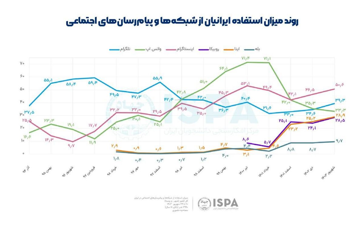 میزان استفاده ایرانیان از پیام‌رسان‌ها و شبکه‌های اجتماعی