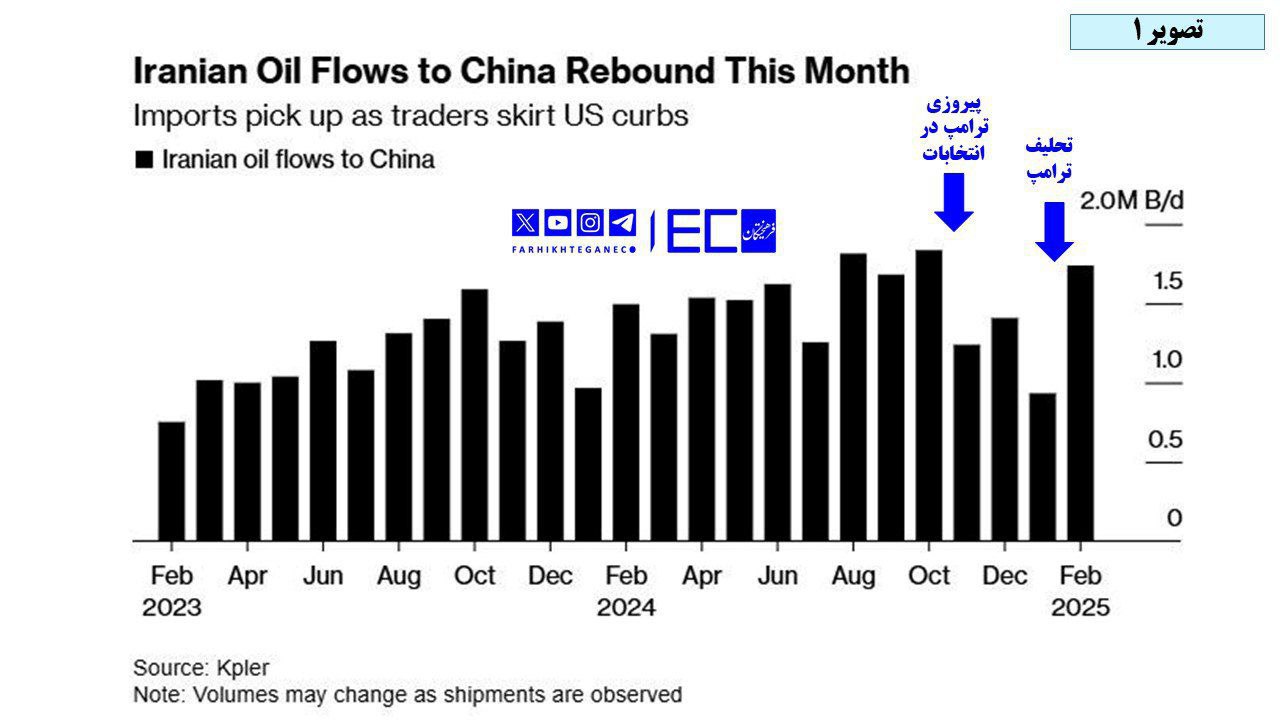 اما اقدامات ترامپ، رئیسجمهور جدید آمریکا برای جلوگیری از صادرات نفت ایران به چین را باید از فوریه سال ۲۰۲۵ مشاهده کرد، تاریخی که اتفاقاً رقم فروش ایران جهش یافته و طبق آمار مؤسسه کپلر با رشدی ۸۶ درصدی نسبت به ماه ژانویه به یک میلیون و ۷۴۰ هزار بشکه در روز رسیده است.