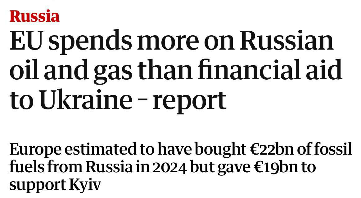 طبق برآوردهای مرکز تحقیقات انرژی و هوای پاک (Crea)، کشورهای عضو اتحادیه اروپا در سال سوم جنگ حدود €۲۱.۹ میلیارد یورو (۱۸.۱ میلیارد پوند) برای نفت و گاز روسیه پرداخت کردهاند.