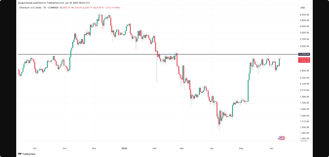 قیمت اتریوم در تاریخ ۱۰ ژوئن ۲,۷۶۸ دلار بود و در حال حاضر به قیمت ۲,۶۷۹ دلار معامله میشود که در ۲۴ ساعت گذشته بیش از ۷ درصد افزایش داشته است. حجم معاملات روزانه آن ۱۱۴ درصد افزایش یافته و به ۲۶.۵ میلیارد دلار رسیده است که شدت فعالیت تقاضا را تقویت میکند.