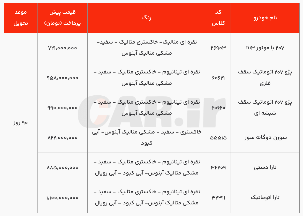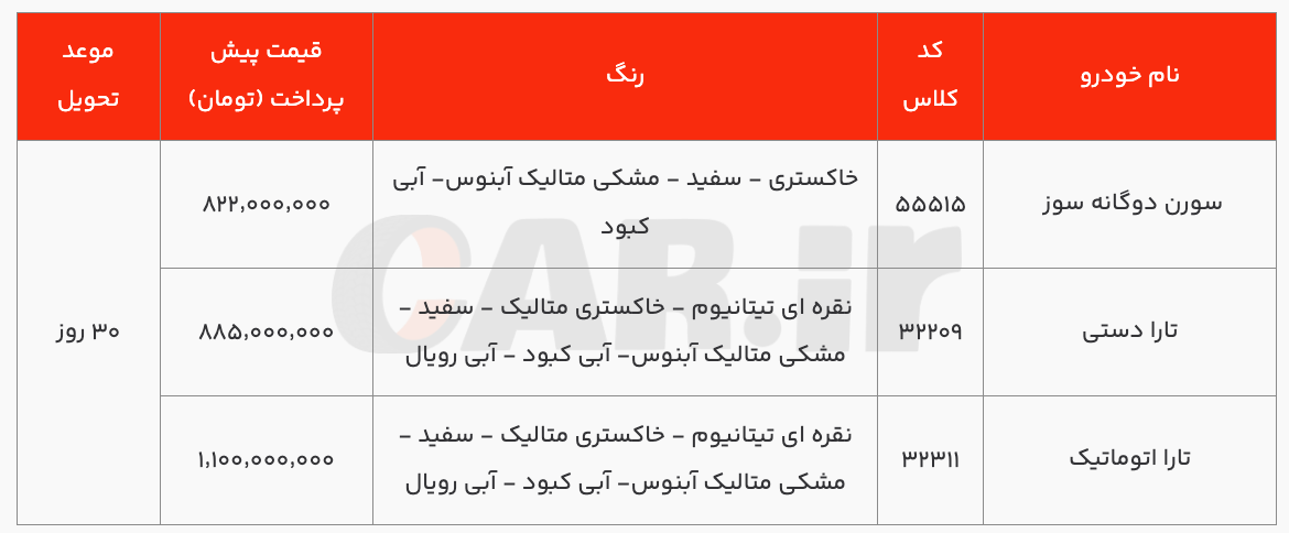 فراخوان شامل سه بخش فروش فوقالعاده (با موعد تحویل حداکثر ۳ ماهه)، فوری (تحویل ۳۰ روزه) و پیشفروش برخی محصولات است. جزئیات مربوط به نوع خودرو، موعد تحویل، برنامه فروش و قیمت نهایی در جداول جداگانه اعلام شده و متقاضیان میبایست بر اساس نوع برنامه فروش اقدام کنند.
