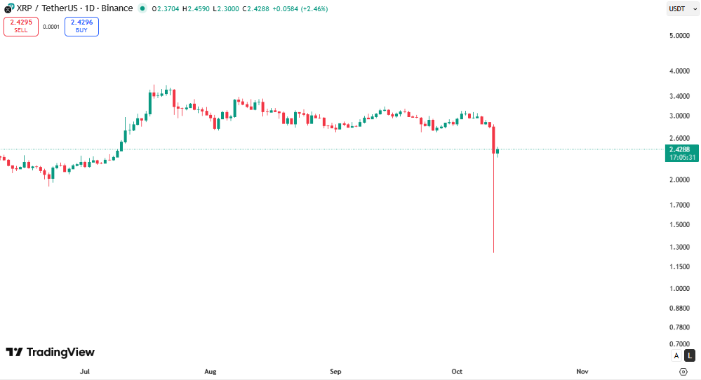 ریپل در جریان این سقوط، حمایتهای ۲,۷۰ و ۲,۵۰ دلاری را از دست داد و در پایینترین سطح روز به ۱,۶۴ دلار رسید. سپس در معاملات پایانی روز با بازگشت تقاضا، قیمت در محدوده ۲,۳۵ تا ۲,۴۰ دلار تثبیت شد.