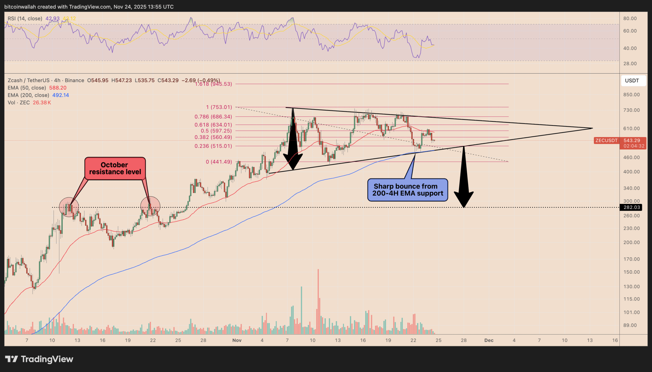 به گزارش بازار، طبق بررسیها، ساختار قیمتی زیکش به الگوی مثلث متقارن رسیده که نشاندهنده سردرگمی بازار پس از رشد یکهزار و پانصد درصدی از اواخر سپتامبر است. برخی تحلیلگران معتقدند در صورت شکسته شدن این الگو به سمت پایین و تداوم شرایط نامطمئن اقتصاد آمریکا بهویژه در سیاستهای نرخ بهره فدرال رزرو، احتمال افت قیمت تا محدوده دوصد و هشتاد دلار وجود دارد.