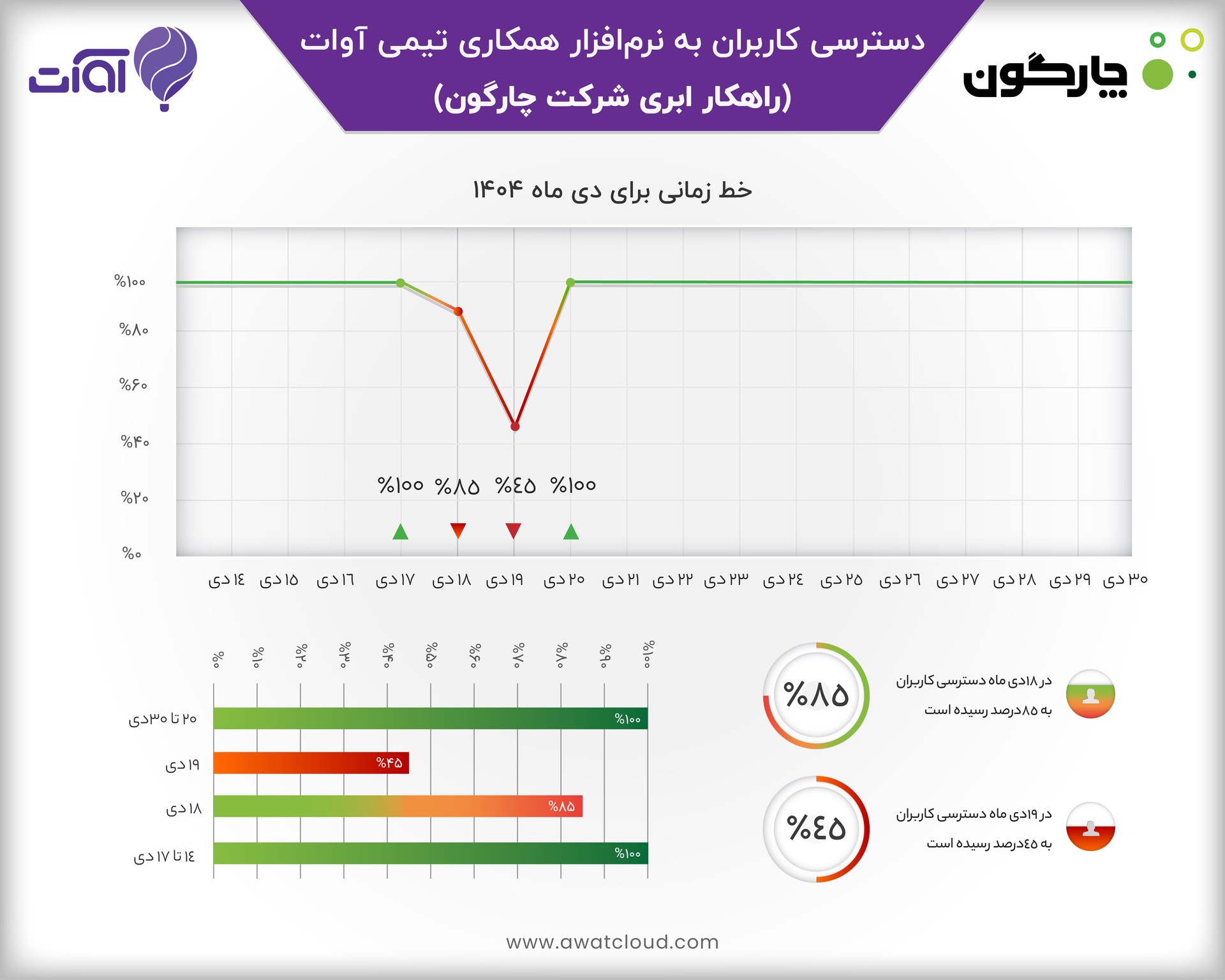 در روز جمعه ۱۹ دی، هم‌زمان با قطع تقریباً کامل اینترنت در کشور، دسترسی کاربران به نرم‌افزار همکاری تیمی آوات چارگون به نزدیک صفر رسید. این اختلال ناگهانی باعث شد بسیاری از تیم‌ها در انجام امور روزمره، هماهنگی‌های کاری و ادامه ارتباطات سازمانی با مشکلات جدی مواجه شوند. با اتصال اینترنت ملی در انتهای همان روز، دسترسی به آوات چارگون دوباره ممکن شد؛ نشانه‌ای از این‌که حتی در شرایط محدود، تیم‌ها به دنبال راهی برای ادامه تعاملات کاری خود هستند.