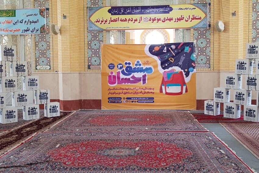 وی گفت: از دیگر اقدامات ستاد، برگزاری پویش مشق احسان بوده که همزمان با آغاز سال تحصیلی و توزیع ۱۰ هزار بسته لوازم التحریر شامل «کیف، مداد، خودکار، دفتر و جامدادی و غیره » با مشارکت گروه های جهادی انجام شد. ارزش هر بسته لوازم التحریر بین ۱۲۰ تا ۱۵۰ هزار تومان است که مبلغ ۳۰ هزار تومان توسط گروه های جهادی و خیرین تأمین و الباقی بالغ بر یک میلیارد تومان، توسط ستاد تأمین شده است.