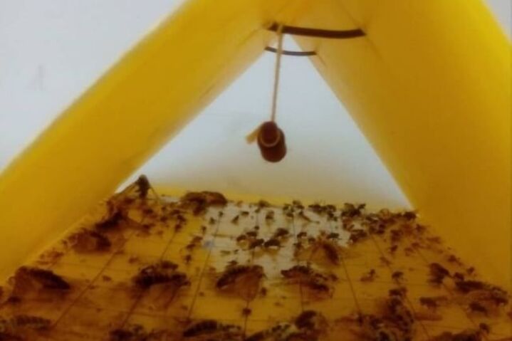 تله ها انواع مختلف «آبی، چسبی و اشکال دیگر» دارد. سالهای اول با استفاده از این تله ها و جای گذاری یک یا دو تله در هر هکتار، به عنوان پیش آگاهی از زمان جفت گیری زمان سم پاشی مشخص می شد و به کشاورزان گفته می شد که چه زمان سم پاشی کنند.