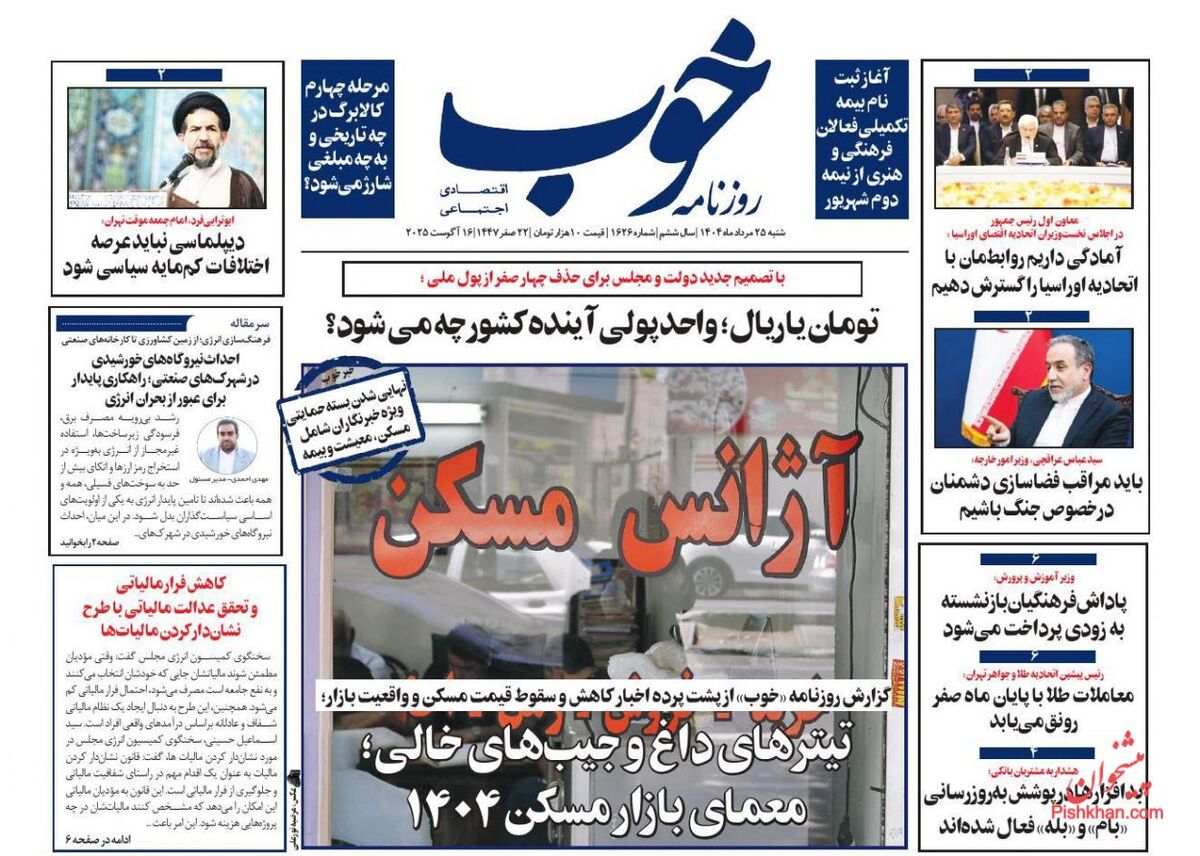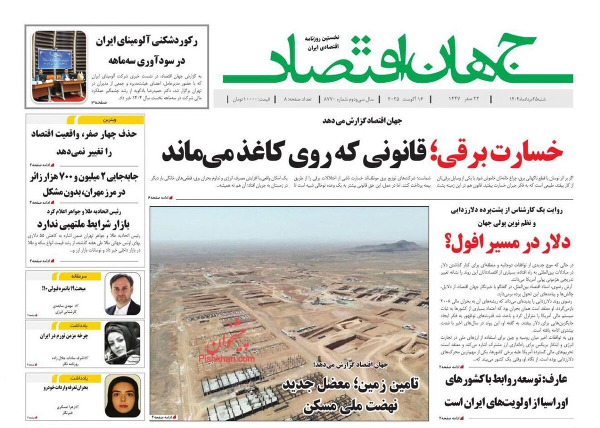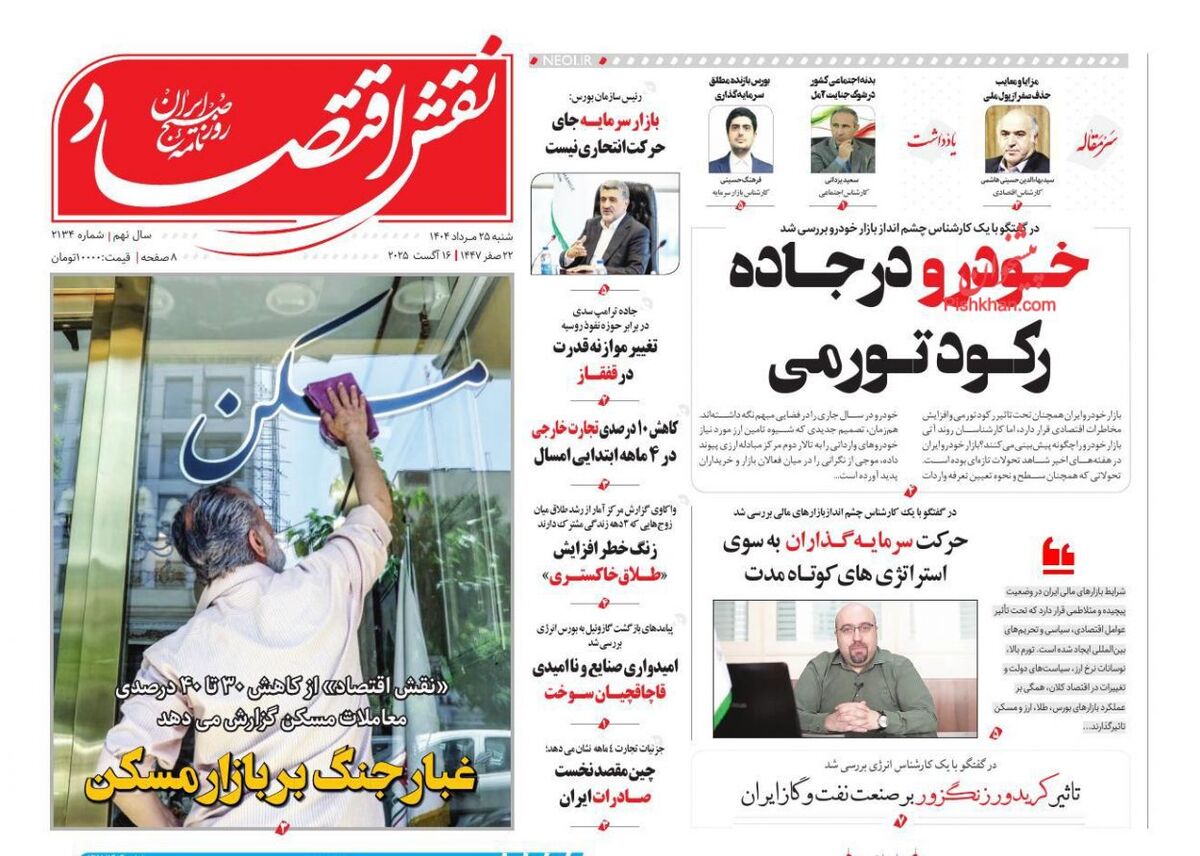صفحه اول روزنامه های اقتصادی ۲۵ مرداد ۱۴۰۴