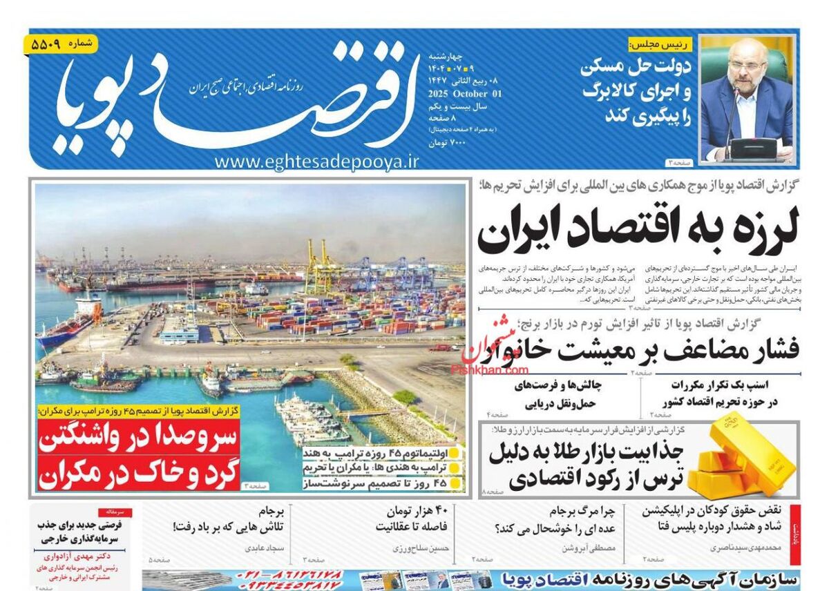 صفحه اول روزنامه های اقتصادی ۹ مهر ۱۴۰۴