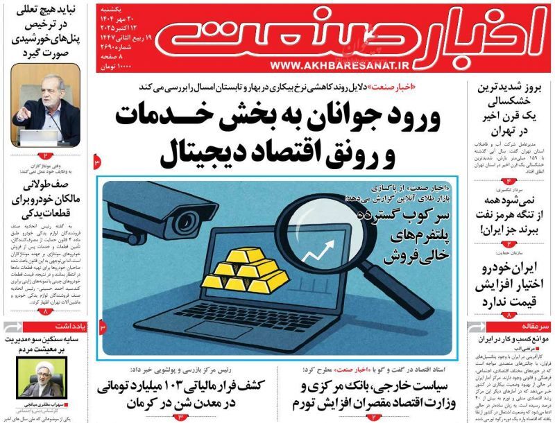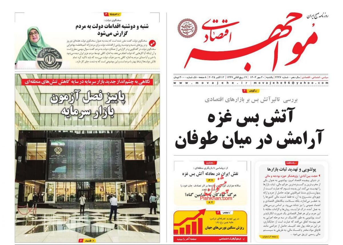 صفحه اول روزنامه های اقتصادی ۲۰ مهر ۱۴۰۴