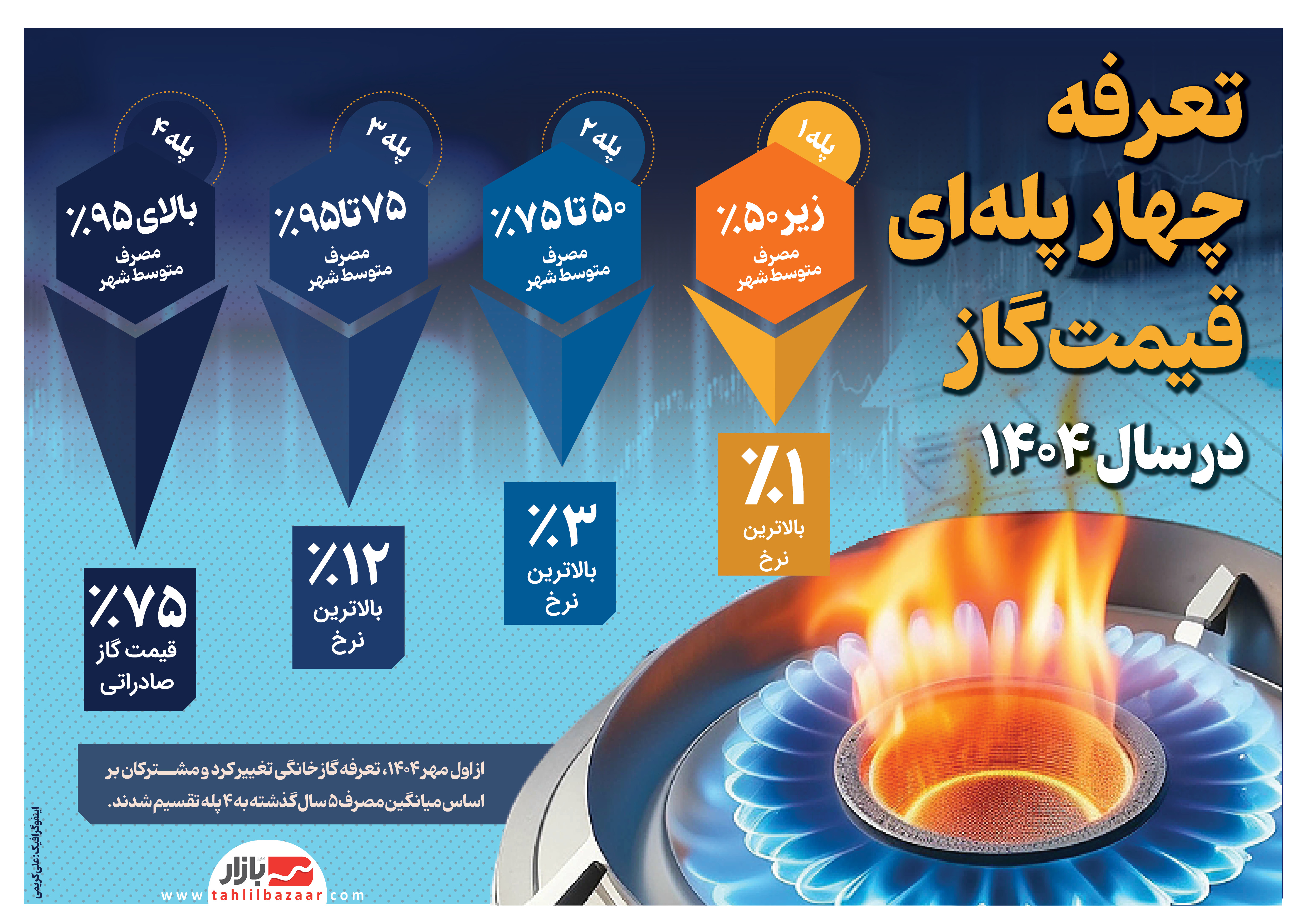 از اول مهر ۱۴۰۴، تعرفه گاز خانگی تغییر کرد و مشترکان بر اساس میانگین مصرف ۵ سال گذشته به ۴ پله تقسیم شدند.