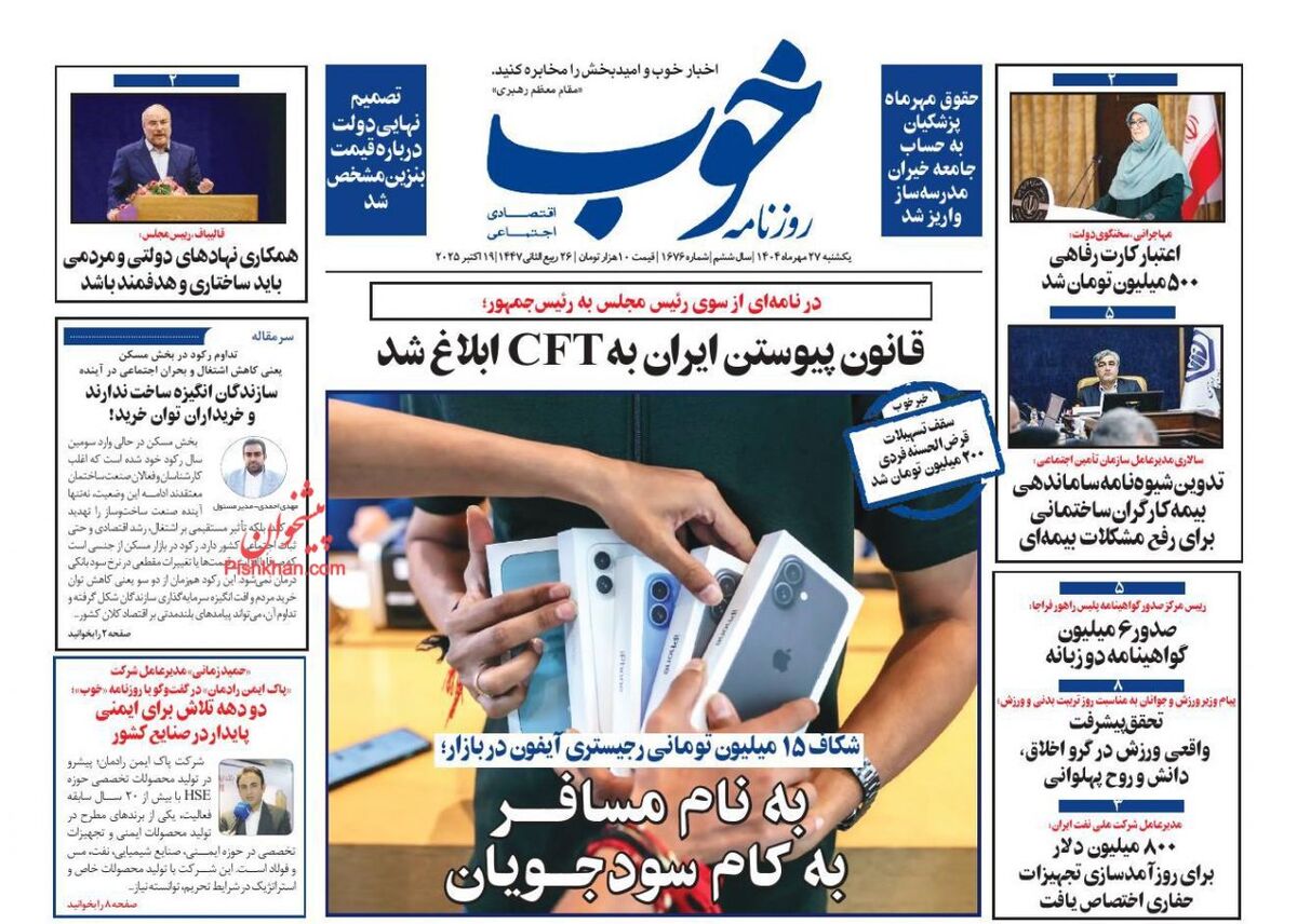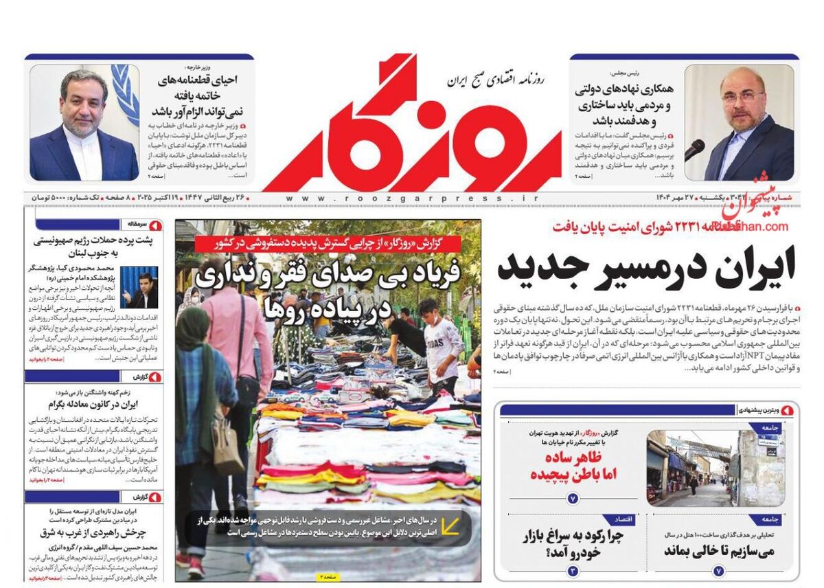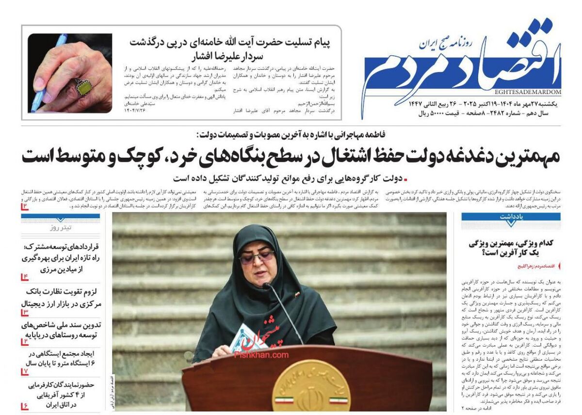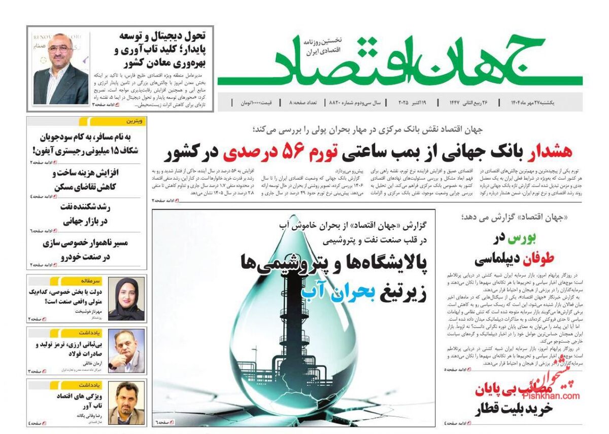 صفحه اول روزنامه های اقتصادی ۲۷ مهر ۱۴۰۴