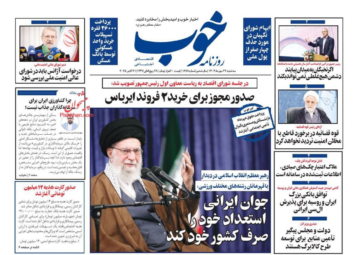 صفحه اول روزنامه های اقتصادی ۲۹ مهر ۱۴۰۴