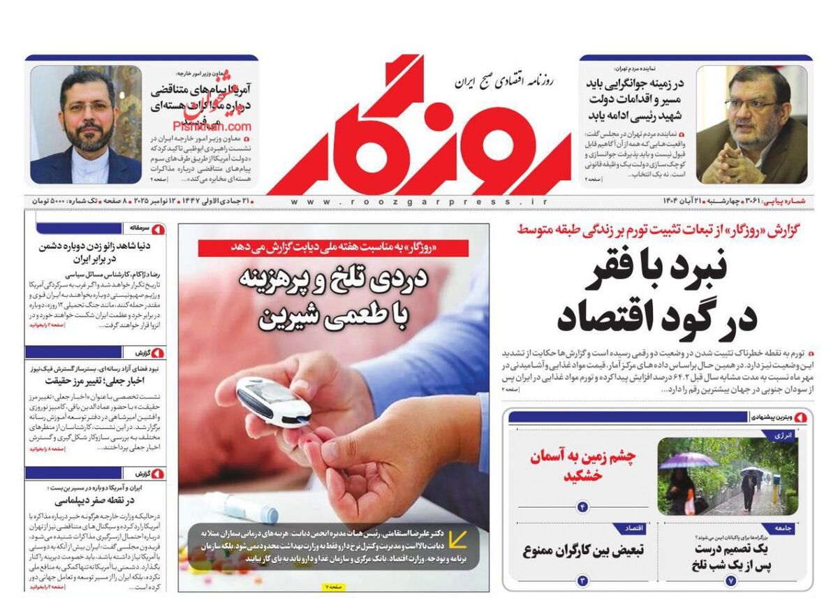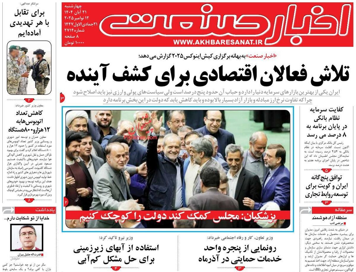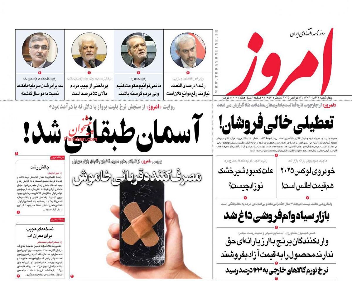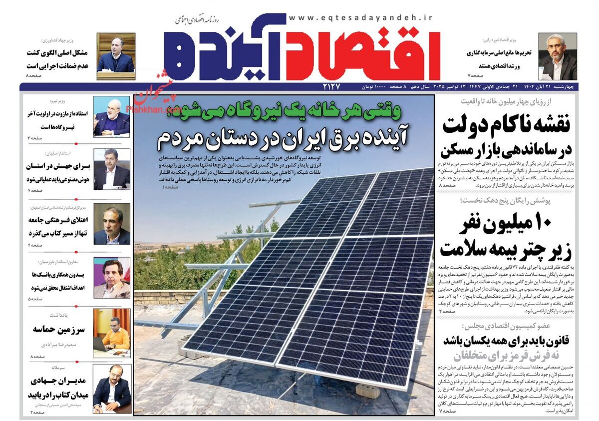 صفحه اول روزنامه های اقتصادی ۲۱ آبان ۱۴۰۴