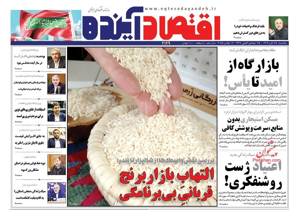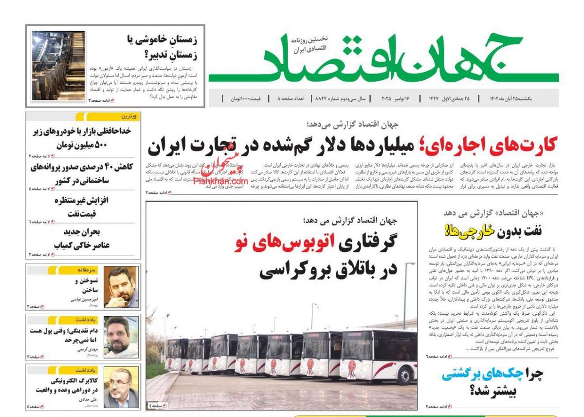 صفحه اول روزنامه های اقتصادی ۲۵ آبان ۱۴۰۴