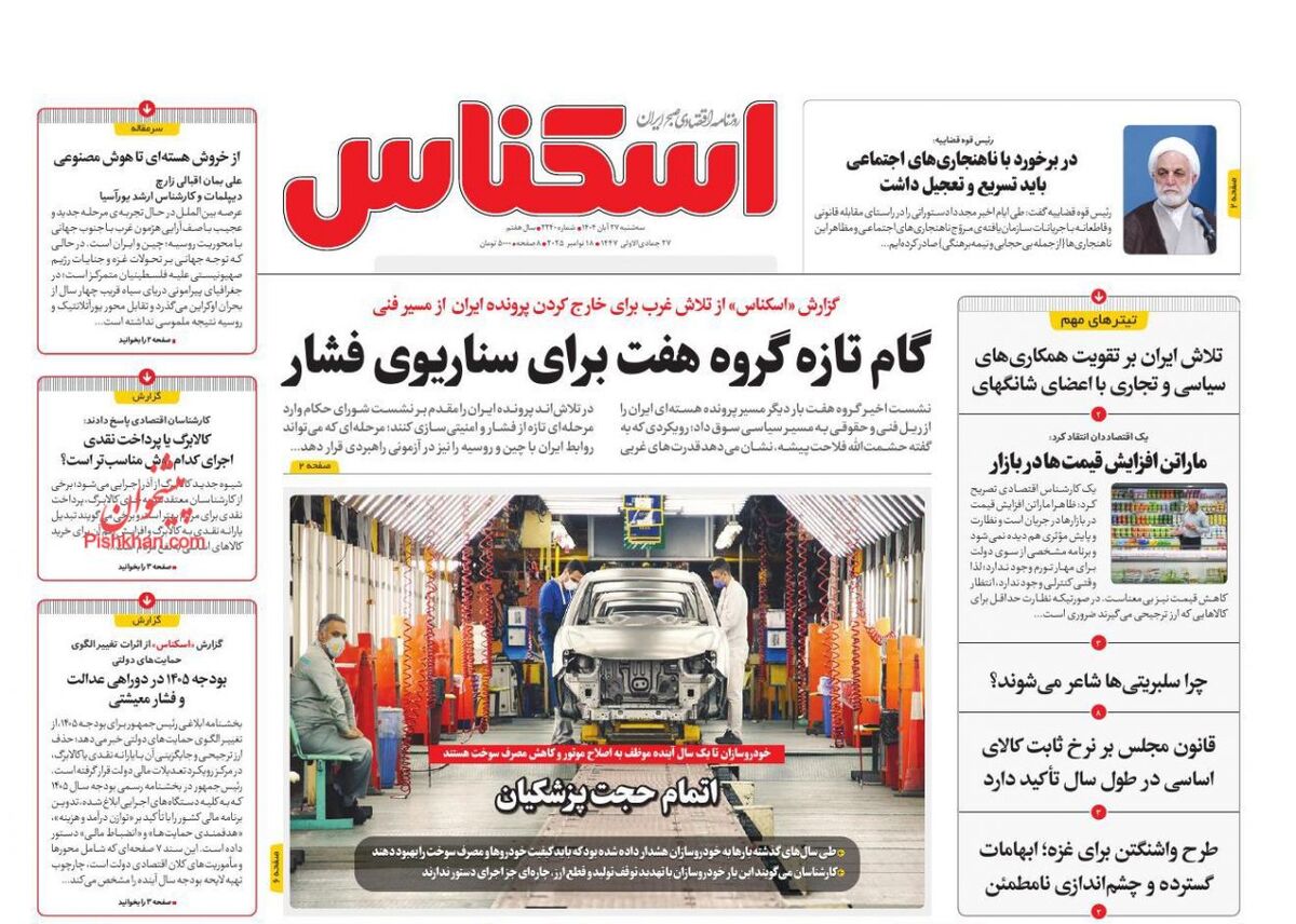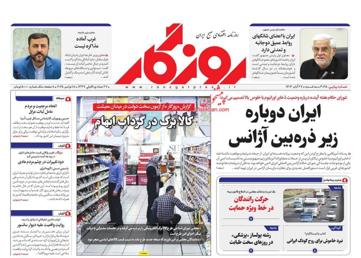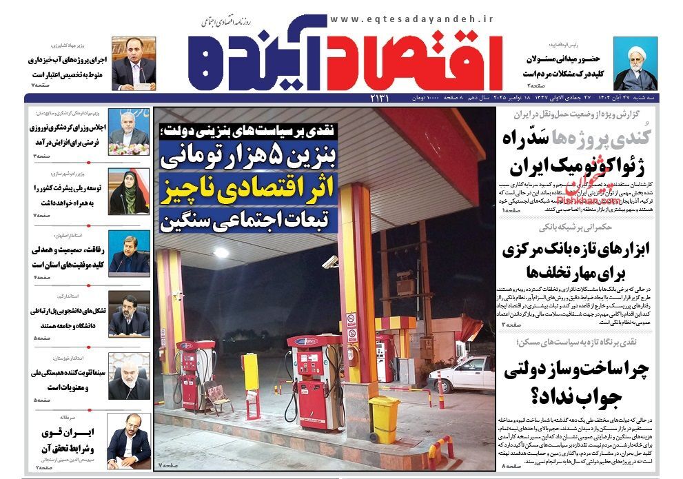 صفحه اول روزنامه های اقتصادی ۲۷ آبان ۱۴۰۴