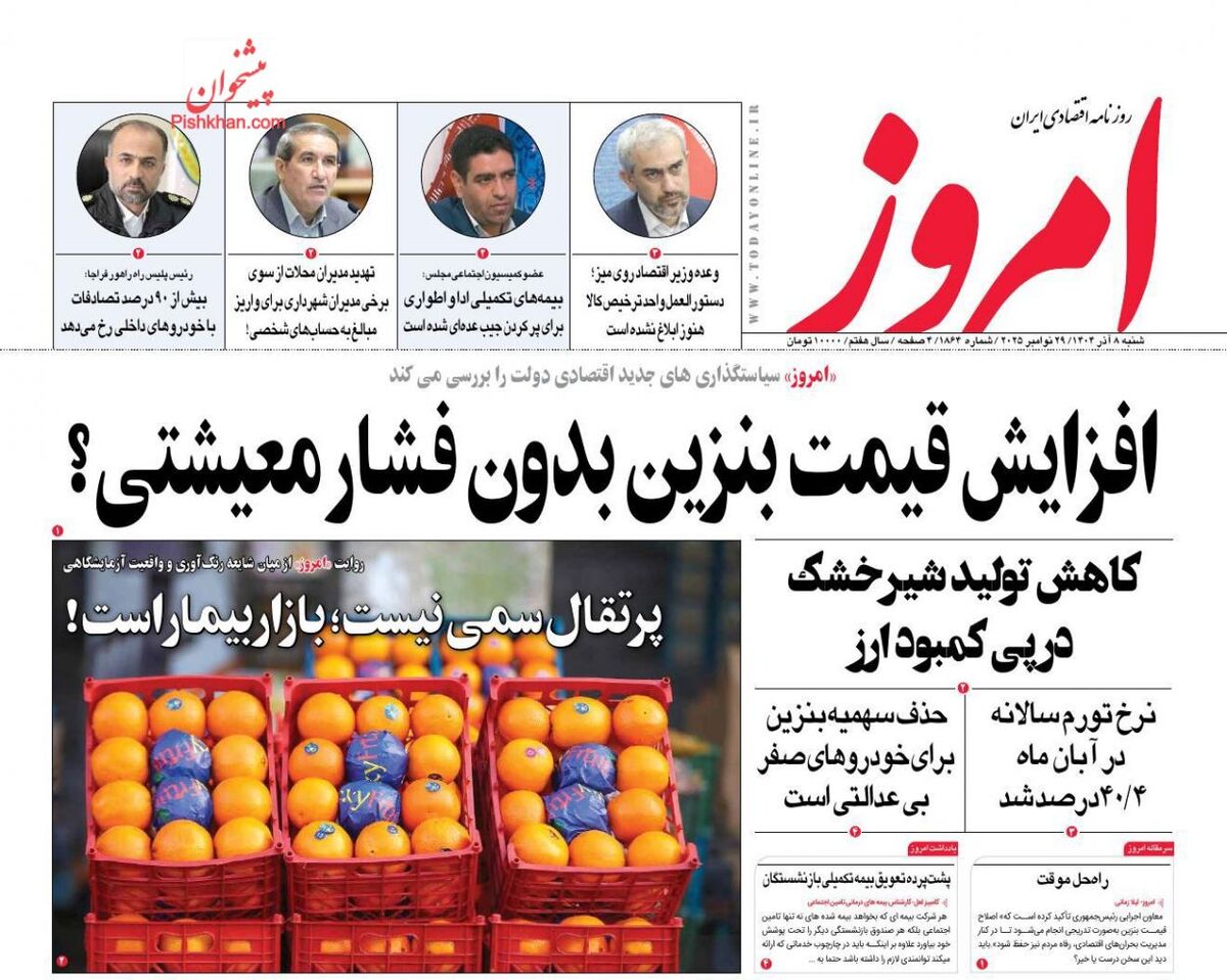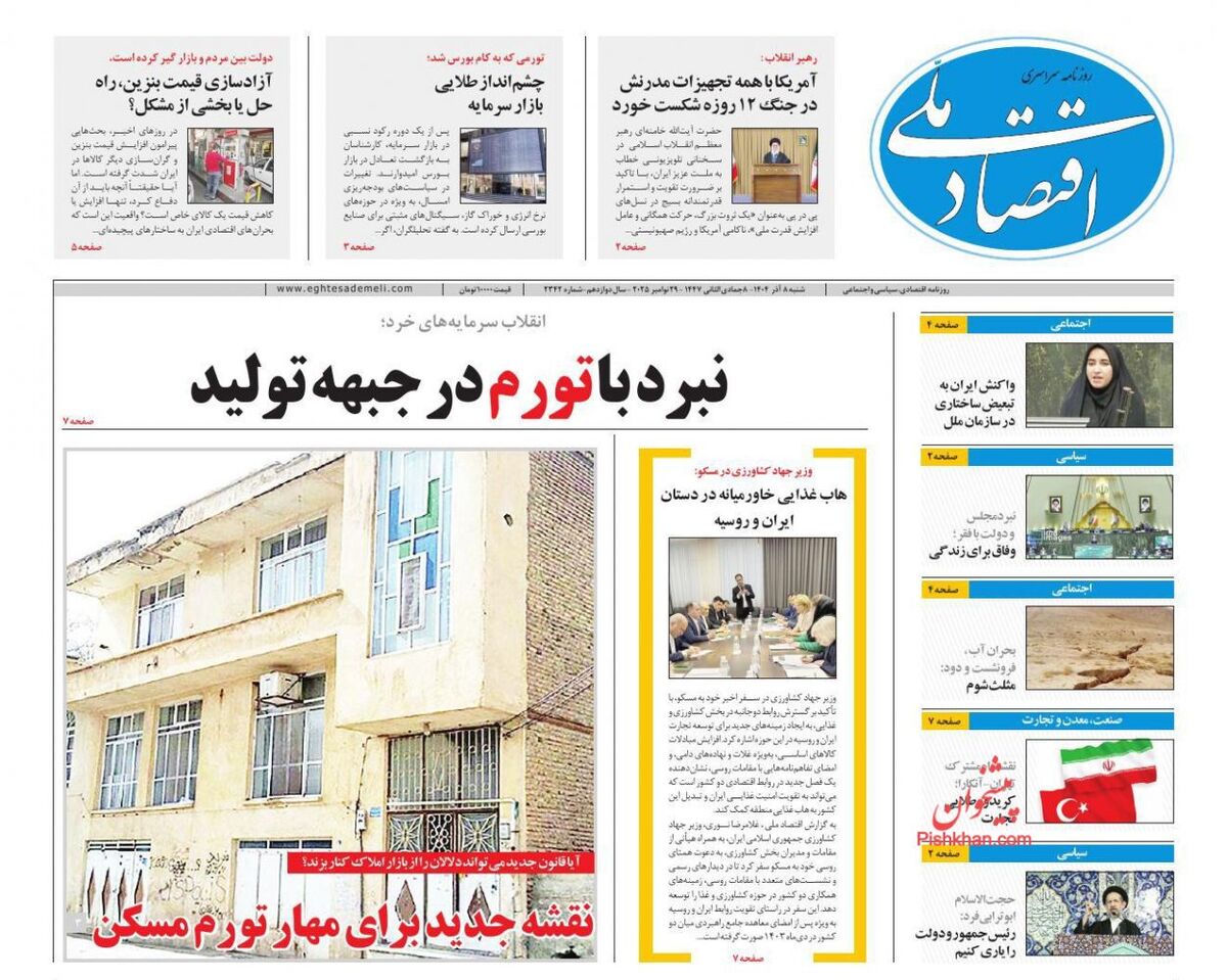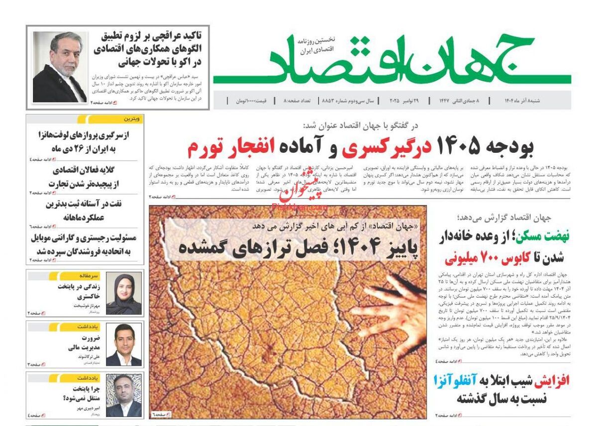 صفحه اول روزنامه های اقتصادی ۸ آذر ۱۴۰۴