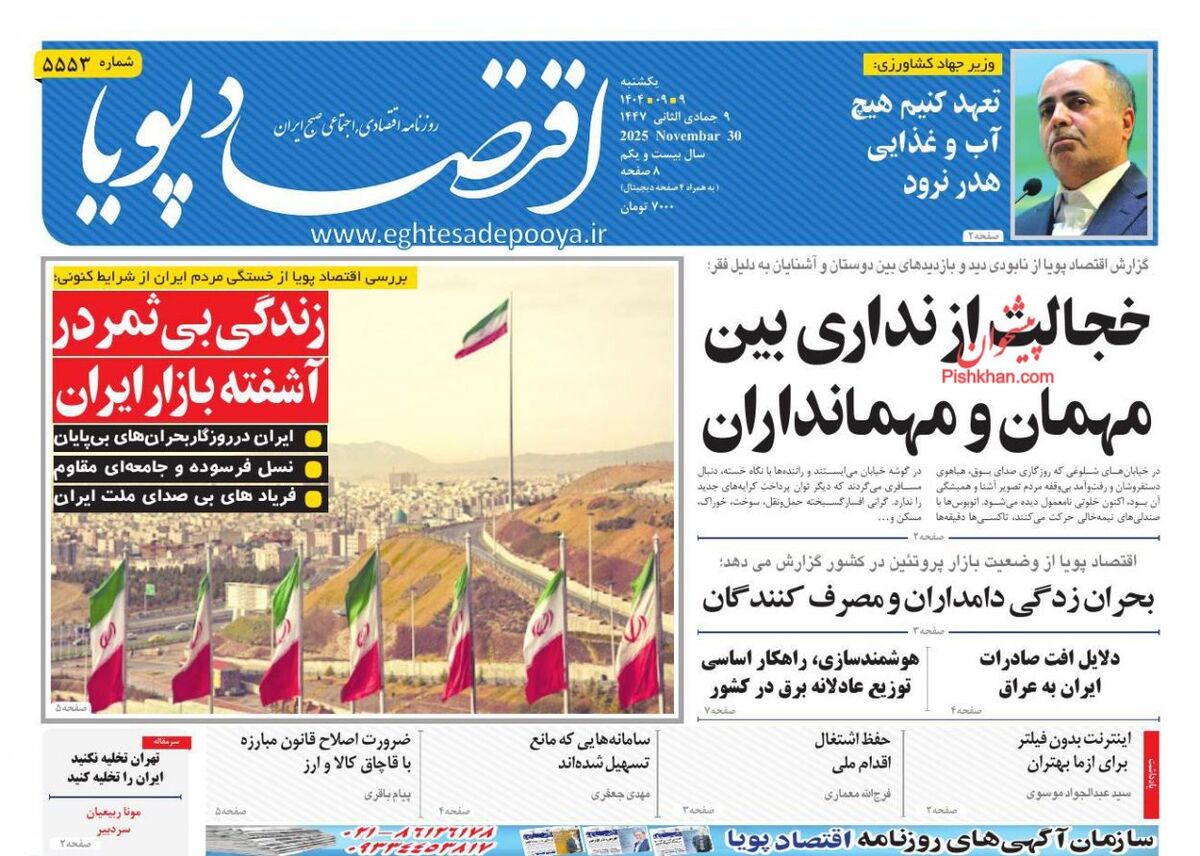 صفحه اول روزنامه های اقتصادی ۹ آذر ۱۴۰۴