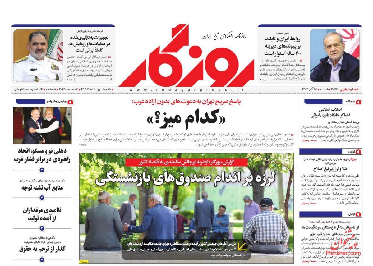 صفحه اول روزنامه های اقتصادی ۱۵ آذر ۱۴۰۴