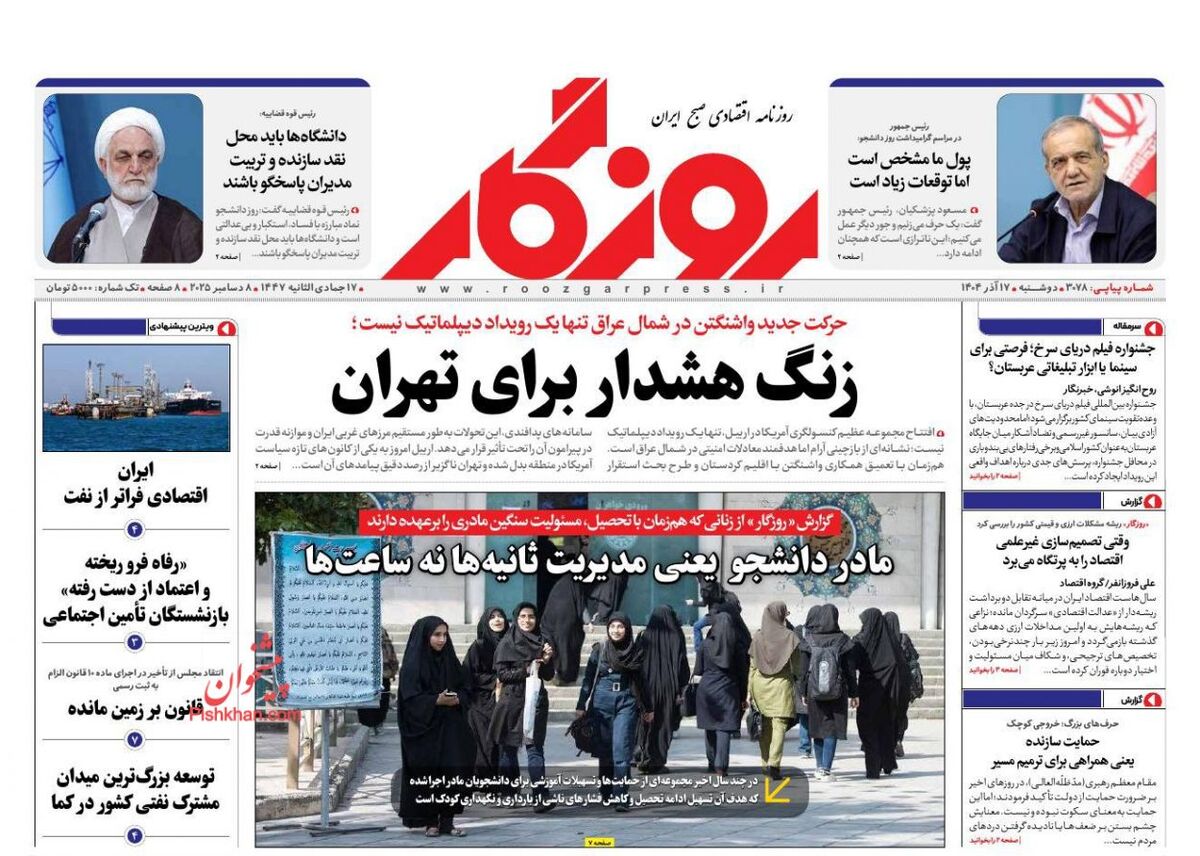 صفحه اول روزنامه های اقتصادی ۱۷ آذر ۱۴۰۴