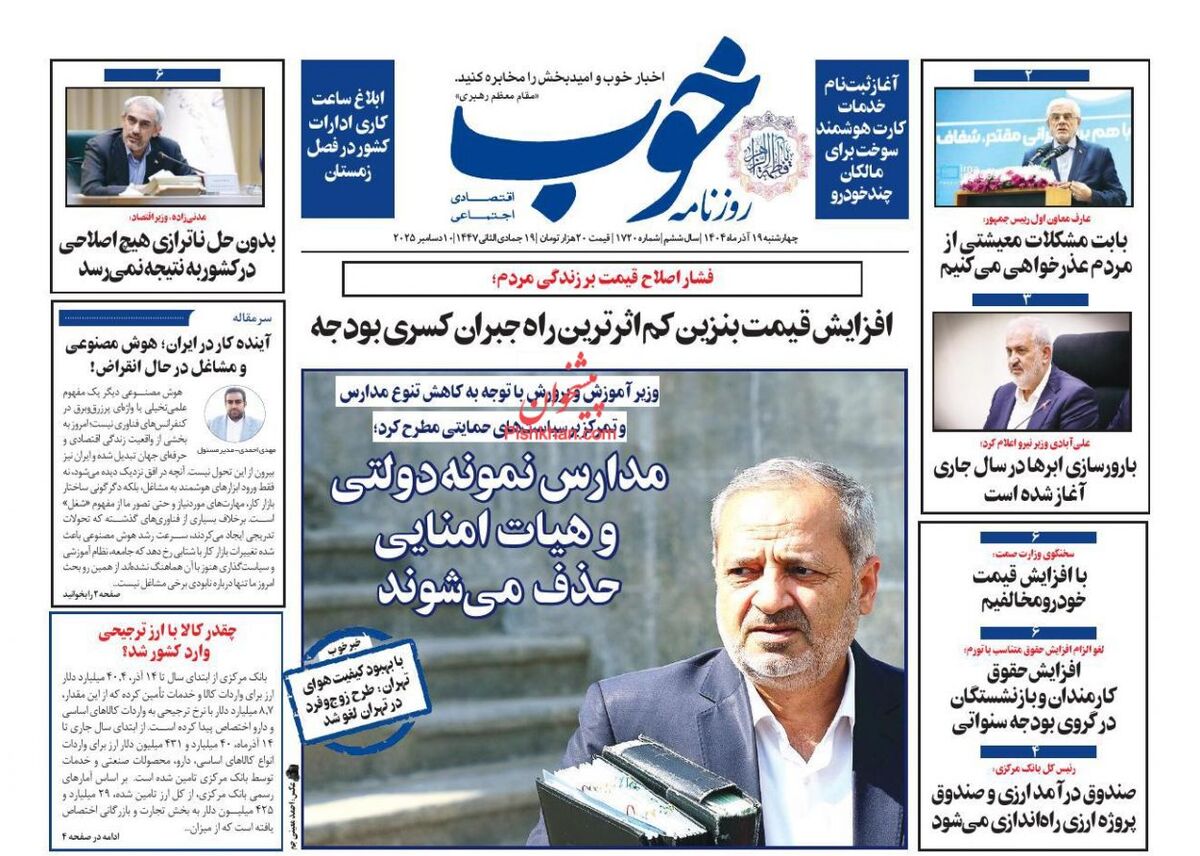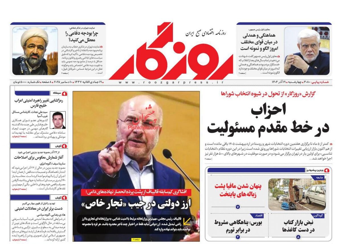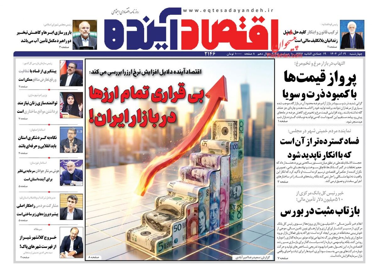 صفحه اول روزنامه های اقتصادی ۱۹ آذر ۱۴۰۴