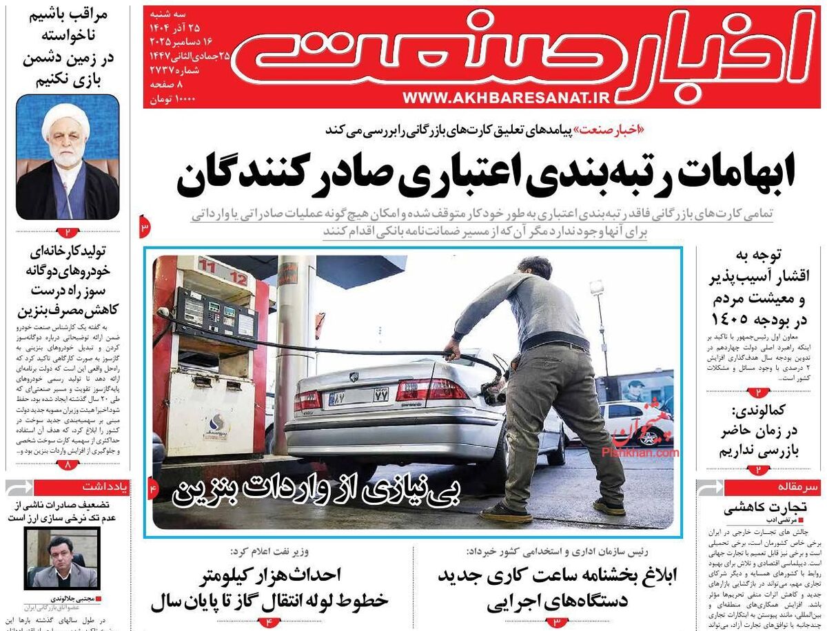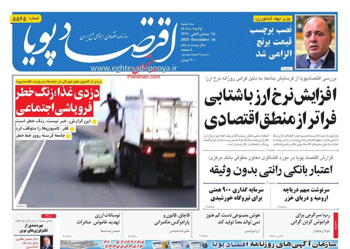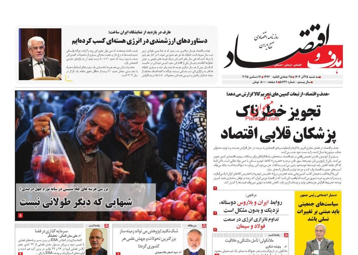 صفحه اول روزنامه های اقتصادی ۲۵ آذر ۱۴۰۴