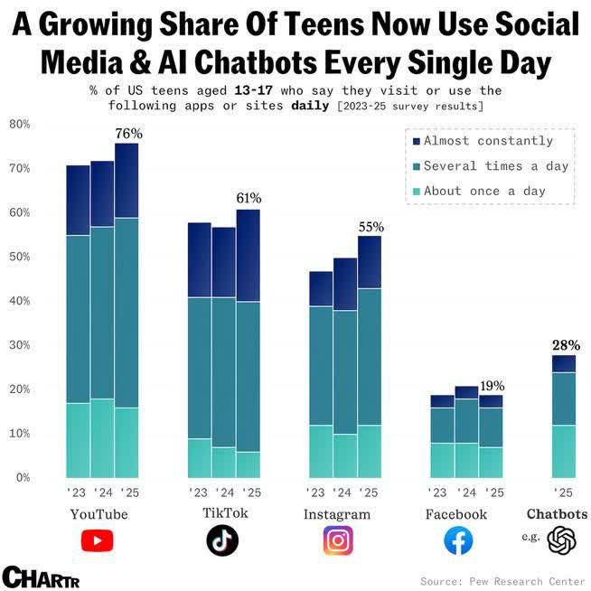 سایت‌های مرجع آماری، این روزها می‌گویند درصد نوجوانانی که ChatGPT استفاده می‌کنند از فیسبوک جلو زده است.