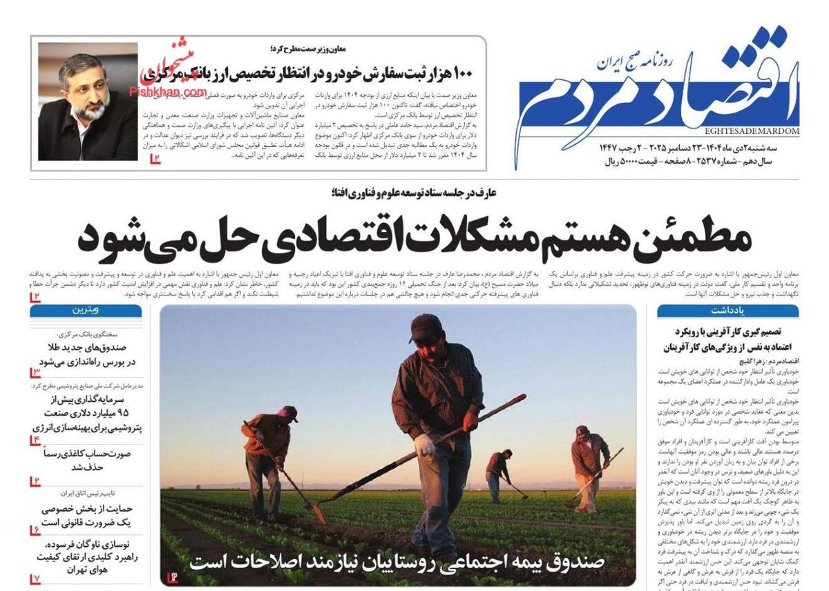 صفحه اول روزنامه های اقتصادی ۲ دی ۱۴۰۴
