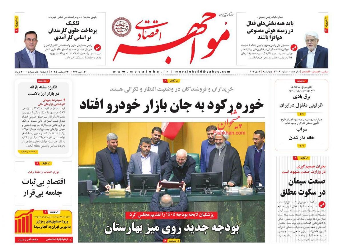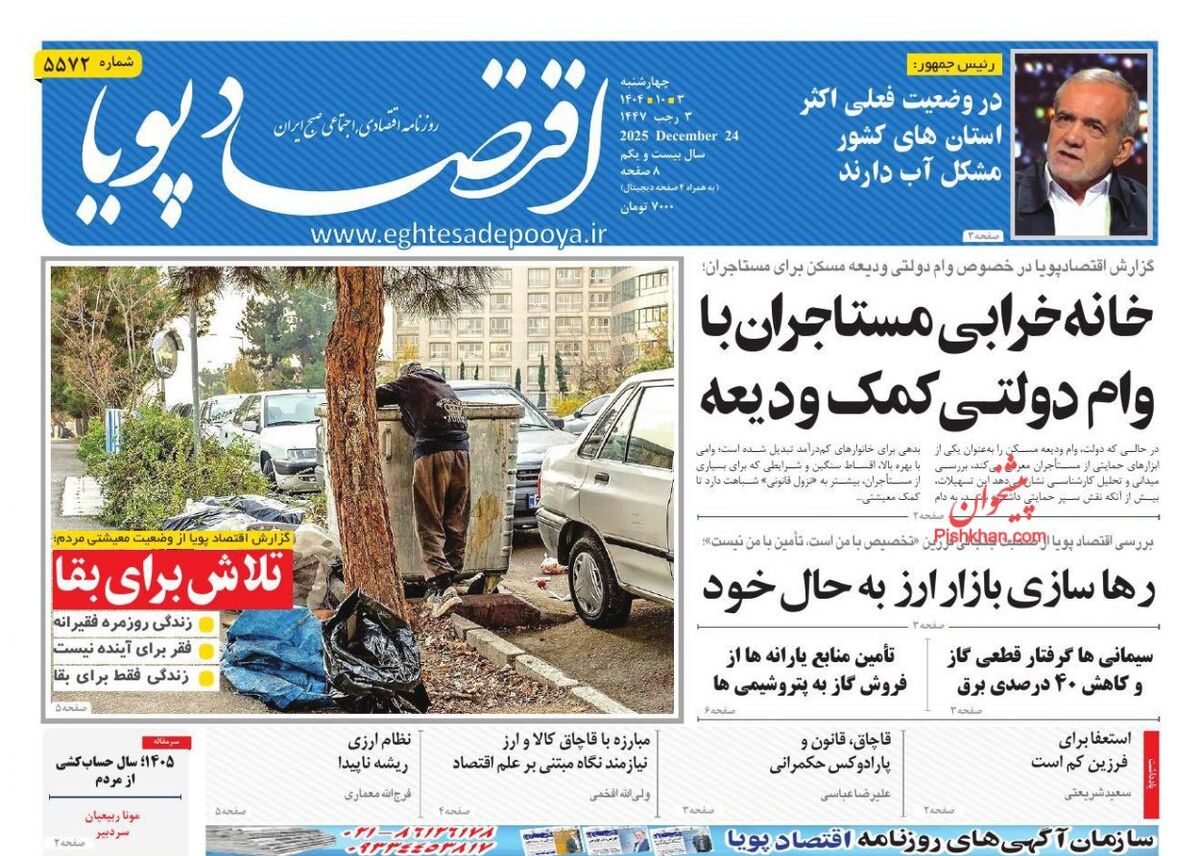صفحه اول روزنامه های اقتصادی ۳ دی ۱۴۰۴
