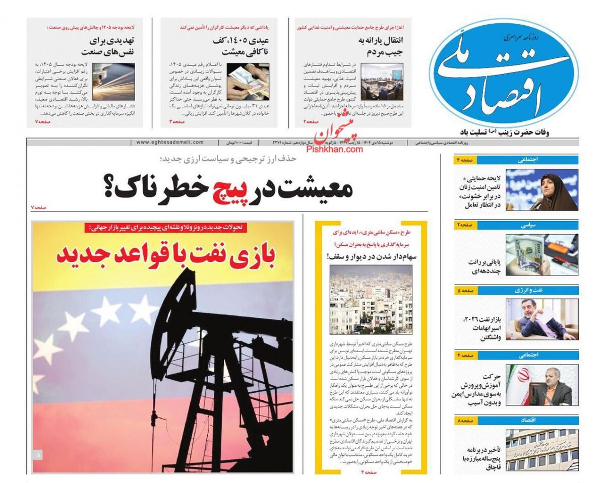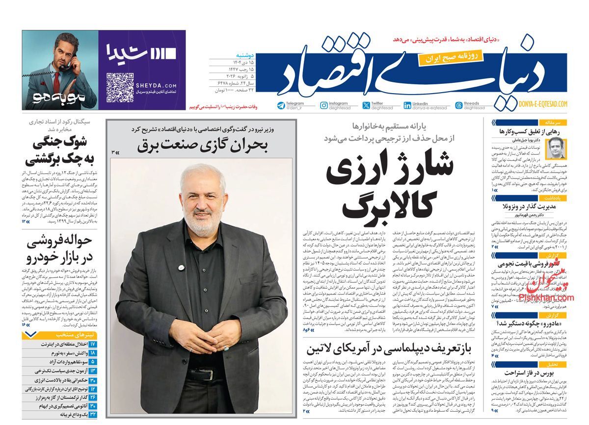 صفحه اول روزنامه های اقتصادی ۱۵ دی ۱۴۰۴