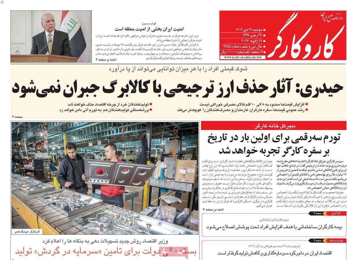 صفحه اول روزنامه های اقتصادی ۲۹ دی ۱۴۰۴