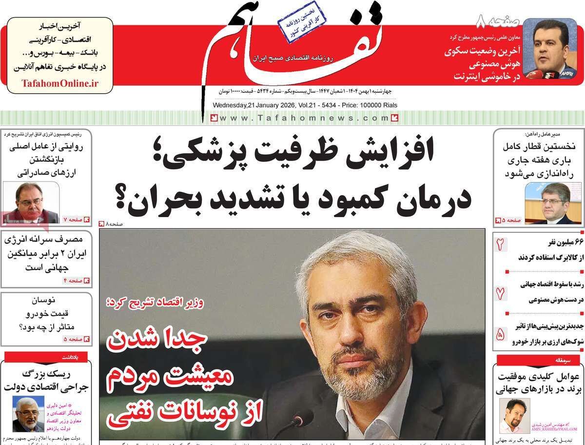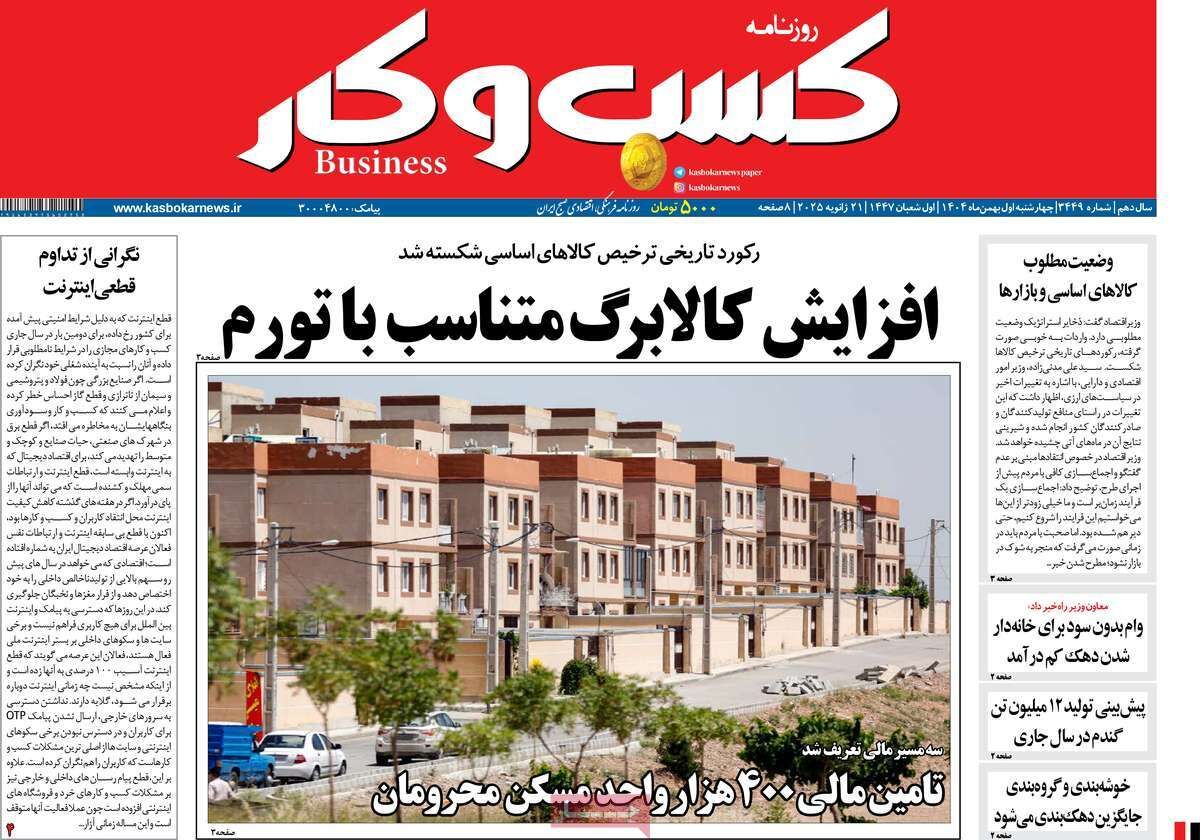 صفحه اول روزنامه های اقتصادی ۱ بهمن ۱۴۰۴