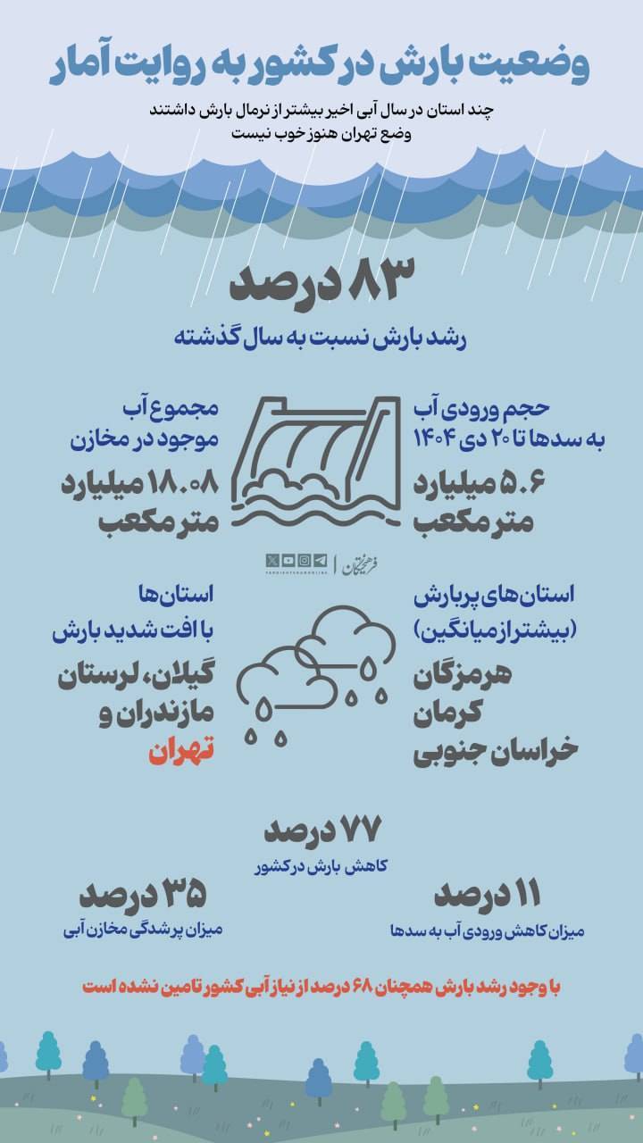 آمارها حاکی از ۸۳ درصد رشد بارش نسبت به سال گذشته است.