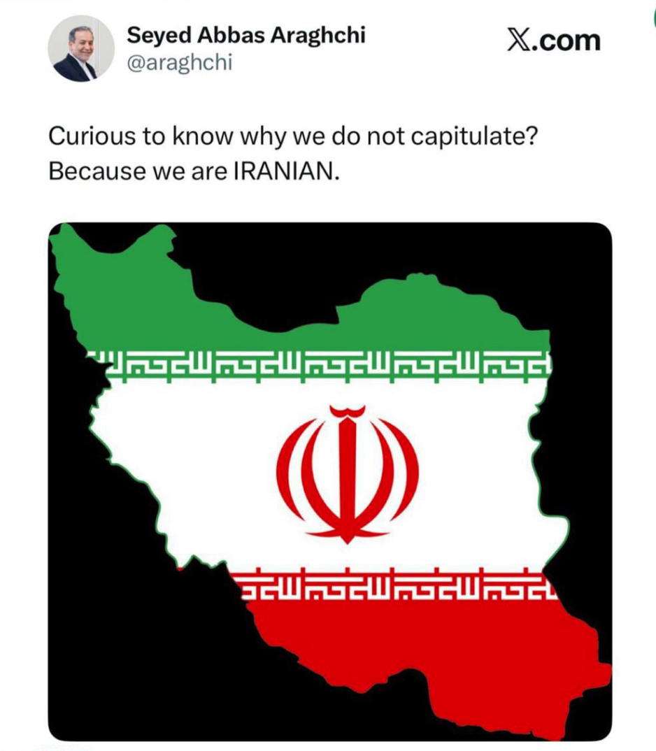 عراقچی خطاب به ترامپ نوشت: کنجکاوید بدانید چرا تسلیم نمیشویم؟ چون ما «ایرانی» هستیم.