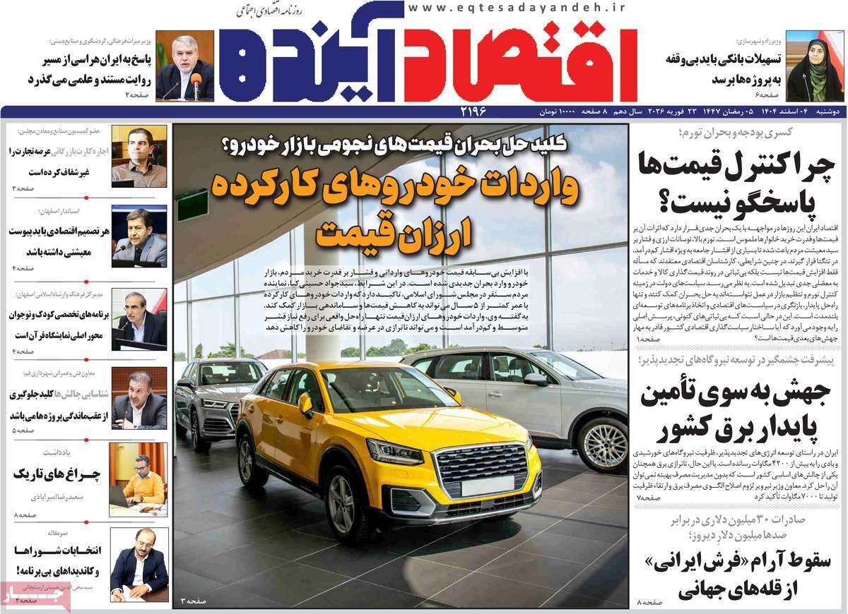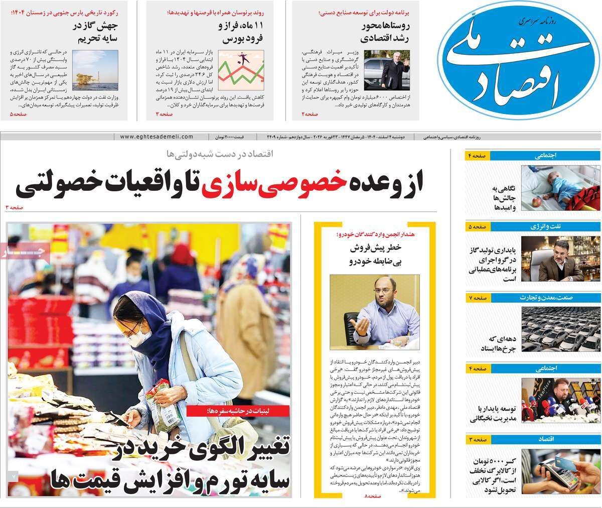 صفحه اول روزنامه های اقتصادی ۴ اسفند ۱۴۰۴